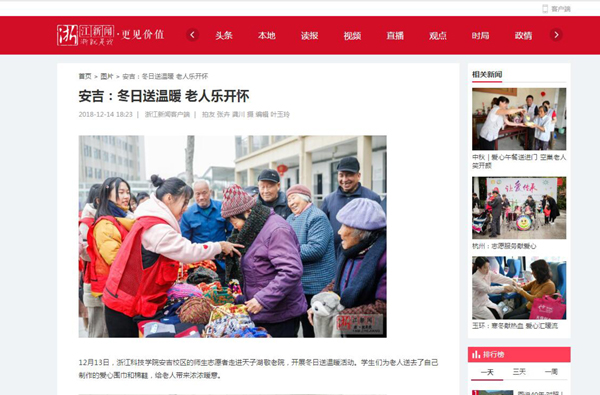 12月13日,浙江科技学院安吉校区的师生志愿者走进天子湖敬老院,开展冬日送温暖活动。学生们为老人送去了自己制作的爱心围巾和棉鞋,给老人带来浓浓暖意。