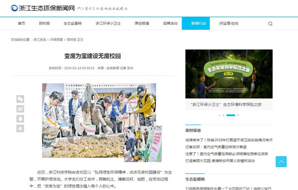 近日,浙江科技学院安吉校区以“弘扬绿色环保精神,试点无废校园建设”为主题,开展护绿活动。大学生们分工合作,挥锄松土、播撒花籽、施肥,在劳动过程中,把“变废为宝”的绿色理念植入每个人的心中。
