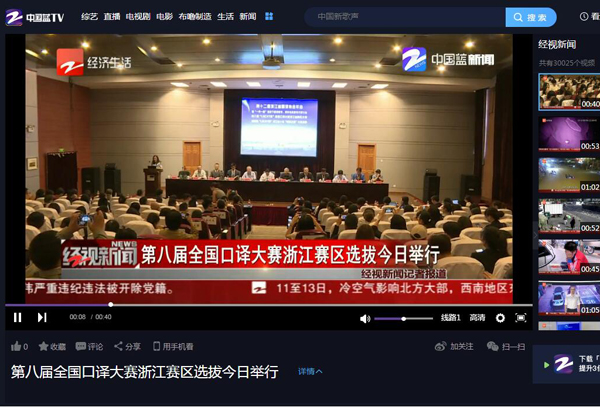 5月11日,第八届全国口译大赛浙江赛区选拔赛在米乐官网举行,浙江经视对比赛进行了报道,视频链接:http://tv.cztv.com/vplay/653262.html。