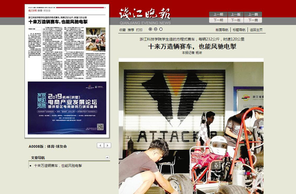 养一支一级方程式车队,至少每年投入上亿欧元,一辆赛车的养护成本,每年至少千万欧元,而在浙江科技学院有一支车队,在蜿蜒曲折的赛道上爬坡、过弯、飞跃,在对手紧逼下加速、冲刺、超越……和电视上看到的一级方程式赛车比赛一样惊险刺激。