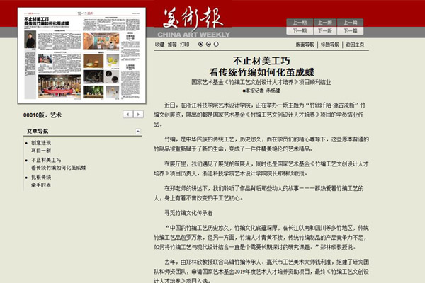 去年,由郑林欣教授联合乌镇竹编传承人、嘉兴市工艺美术大师钱利淮,组建了研究团队和师资团队,申请国家艺术基金2019年度艺术人才培养资助项目,最终《竹编工艺文创设计人才培养》项目入选。