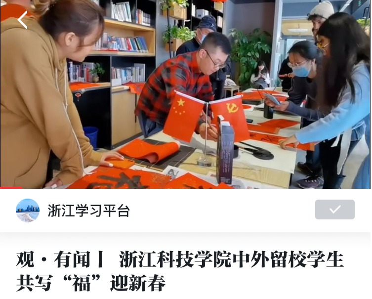 原文链接:浙江科技学院中外留校学生共写“福”迎新春