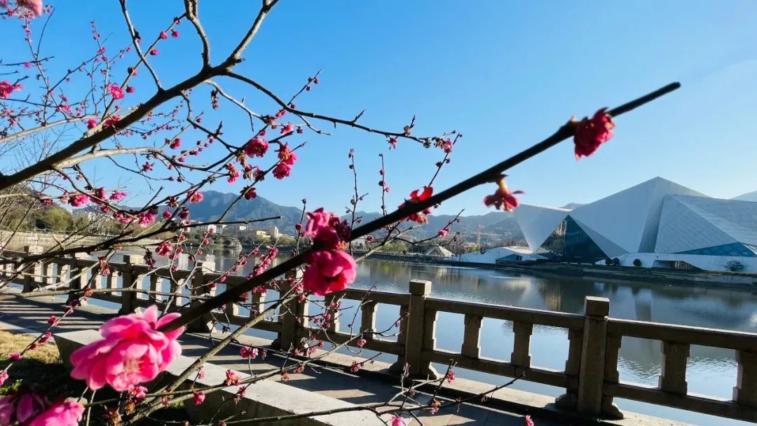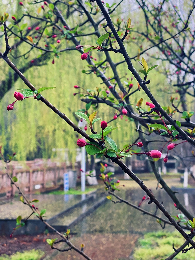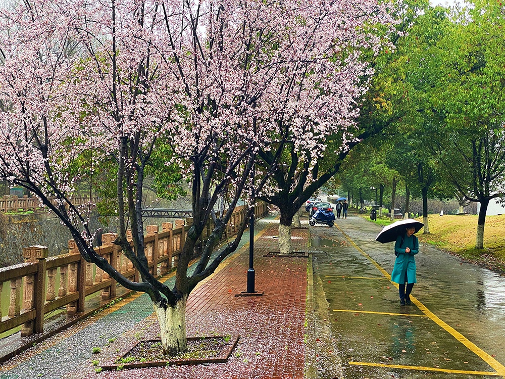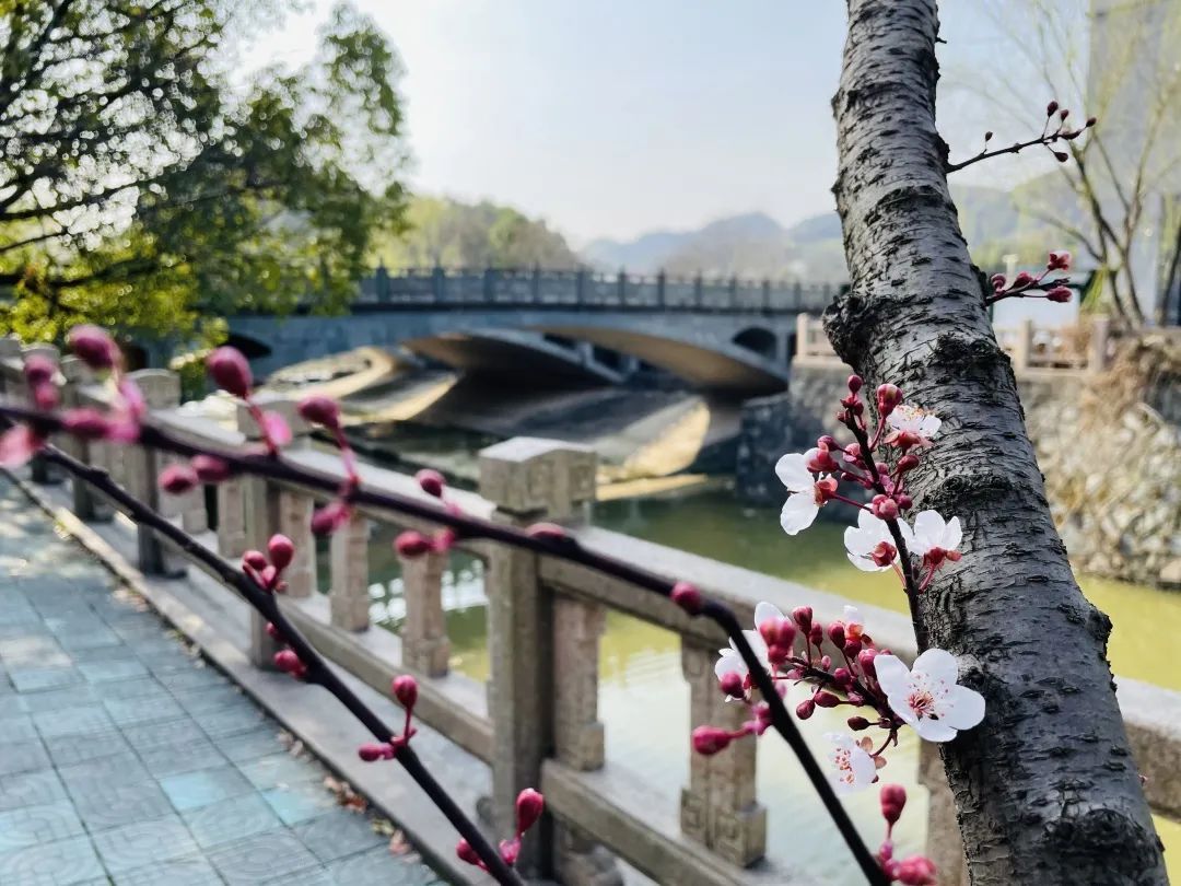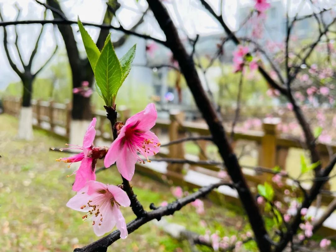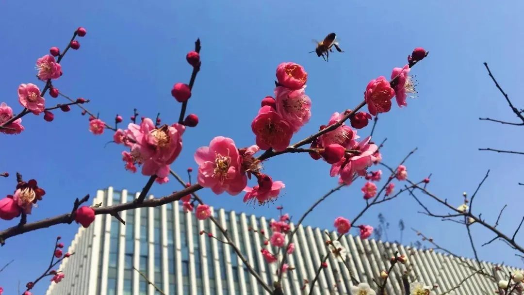 赏春正当时,浙江科技学院里的梅花、桃花等竞相绽放。