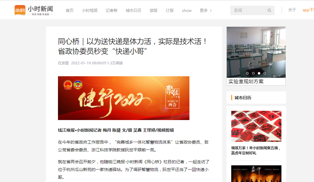 就在省两会召开前夕,他随钱江晚报·小时新闻《同心桥》栏目的记者,一起走访了位于杭州瓜山新苑的一家快递驿站。为了调研智慧物流,阮世平还当了一回快递小哥。