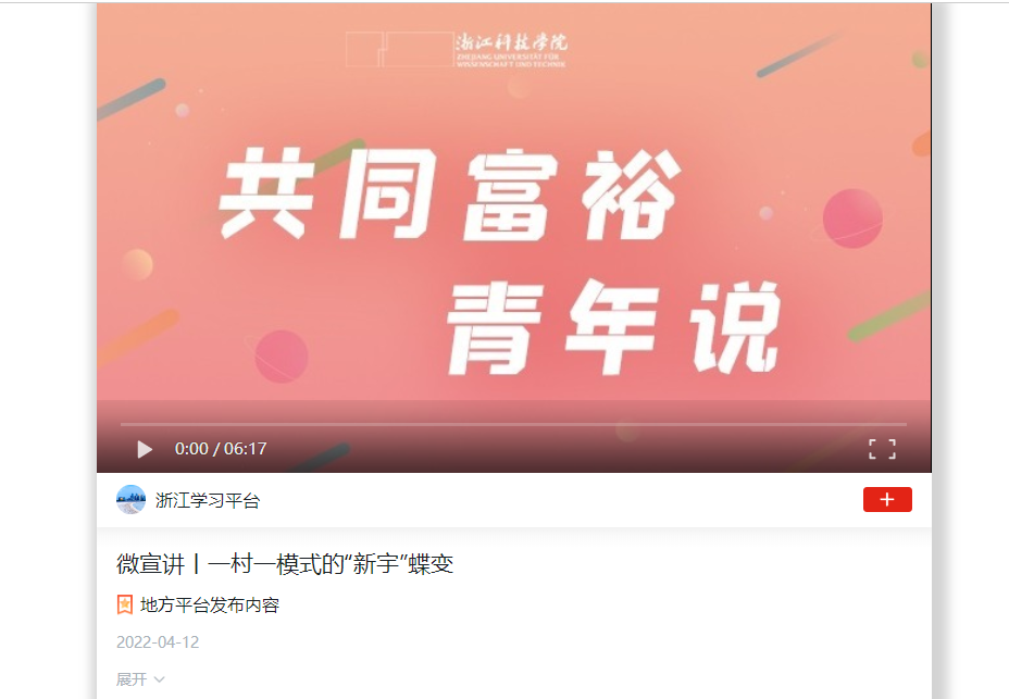 在浙江科技学院党委宣传部指导下,“‘00’心语 青年微宣讲”推出《共同富裕•青年说》系列。搭乘“共富”列车,浙科青年宣讲员走向基层,看基层发展、谈新青年思考、汇“共富”力量。第一讲《一村一模式的“新宇”蝶变》由浙科青年宣讲员施琪为大家带来。