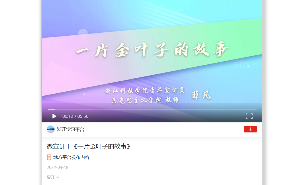 视频链接:微宣讲丨《一片金叶子的故事》