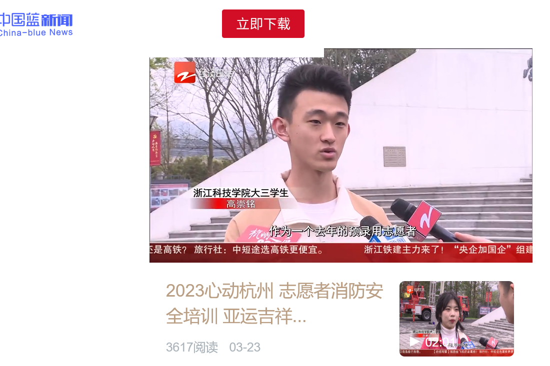 中国蓝新闻客户端:2023心动杭州 志愿者消防安全培训 亚运吉祥物也来上课