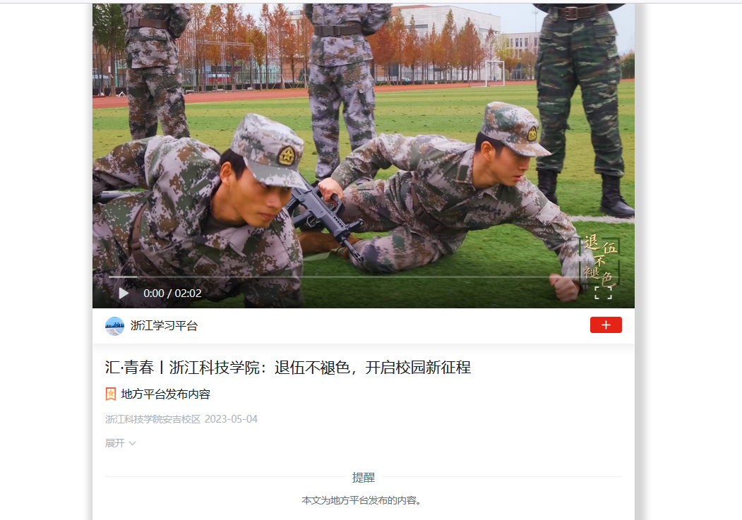 浙江科技学院有一群不一样的青年,他们坚守“退役不退志,退伍不褪色”的精神底色,开启校园新征程。点击观看