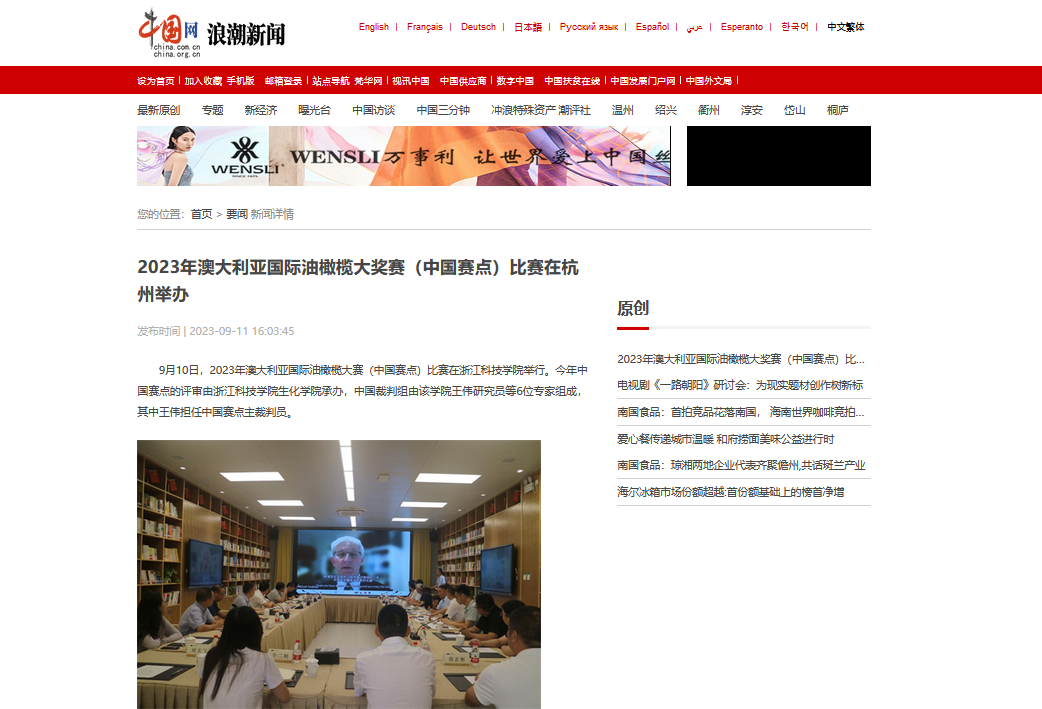 中国网:2023年澳大利亚国际油橄榄大奖赛(中国赛点)比赛在杭州举办