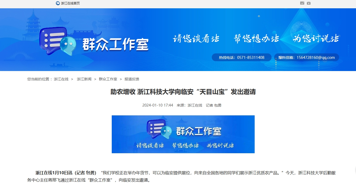 “我们学校正在举办年货节,可以为临安提供展位,向来自全国各地的同学们展示浙江优质农产品。”今天,米乐mile体育官网后勤服务中心主任蒋邢飞通过浙江在线“群众工作室”,向临安发出邀请。