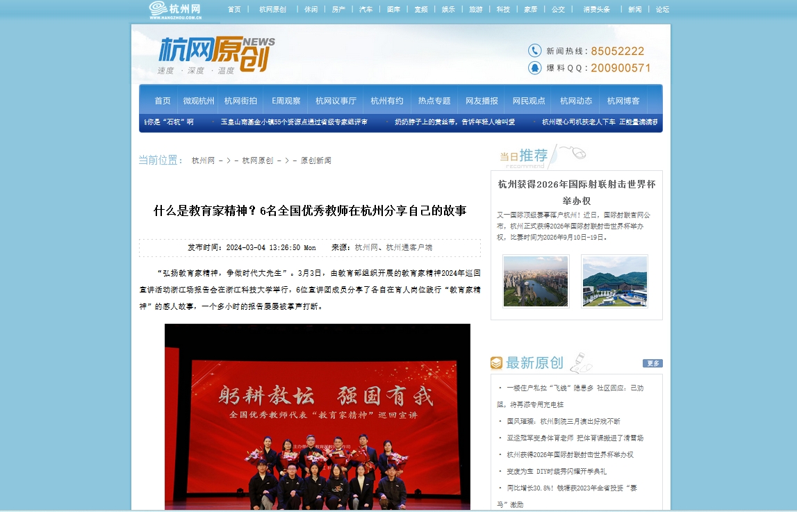 “弘扬教育家精神,争做时代大先生”。3月3日,由教育部组织开展的教育家精神2024年巡回宣讲活动浙江场报告会在米乐mile体育官网举行,6位宣讲团成员分享了各自在育人岗位践行“教育家精神”的感人故事,一个多小时的报告屡屡被掌声打断。