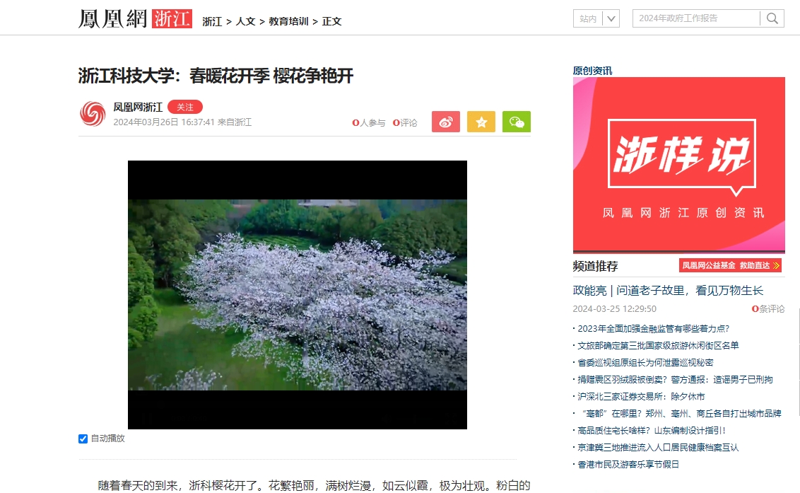凤凰网浙江:米乐mile体育官网:春暖花开季 樱花争艳开