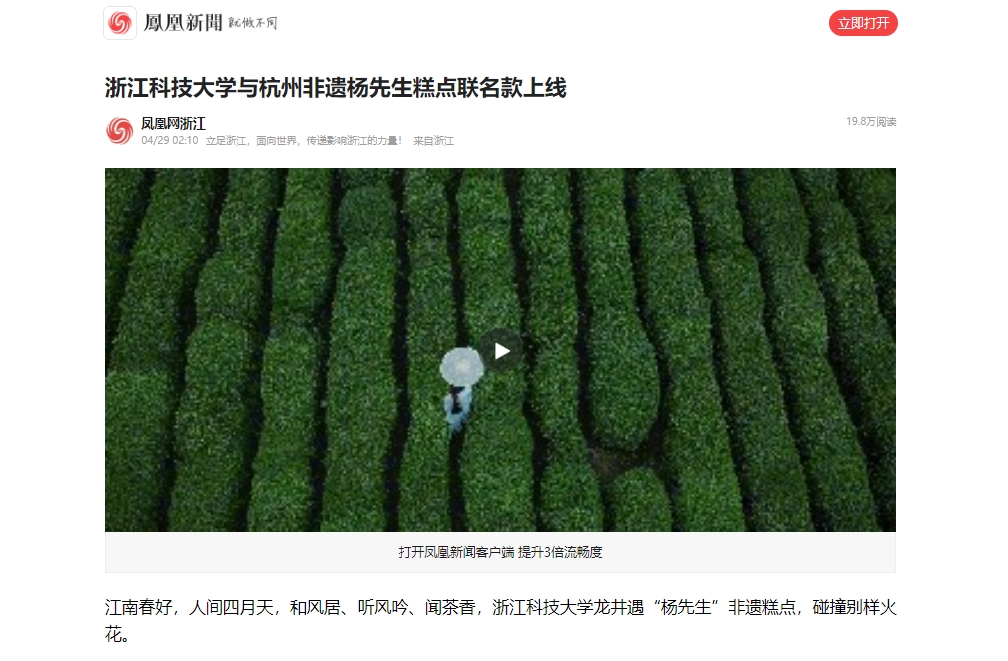 此次梦幻联名,限定发布龙井茶味芡实糕、龙井茶酥两款,浙科大龙井茶园和非遗糕点传承的结合,茶和天下、共享非遗,真正让传统文化走进校园 。