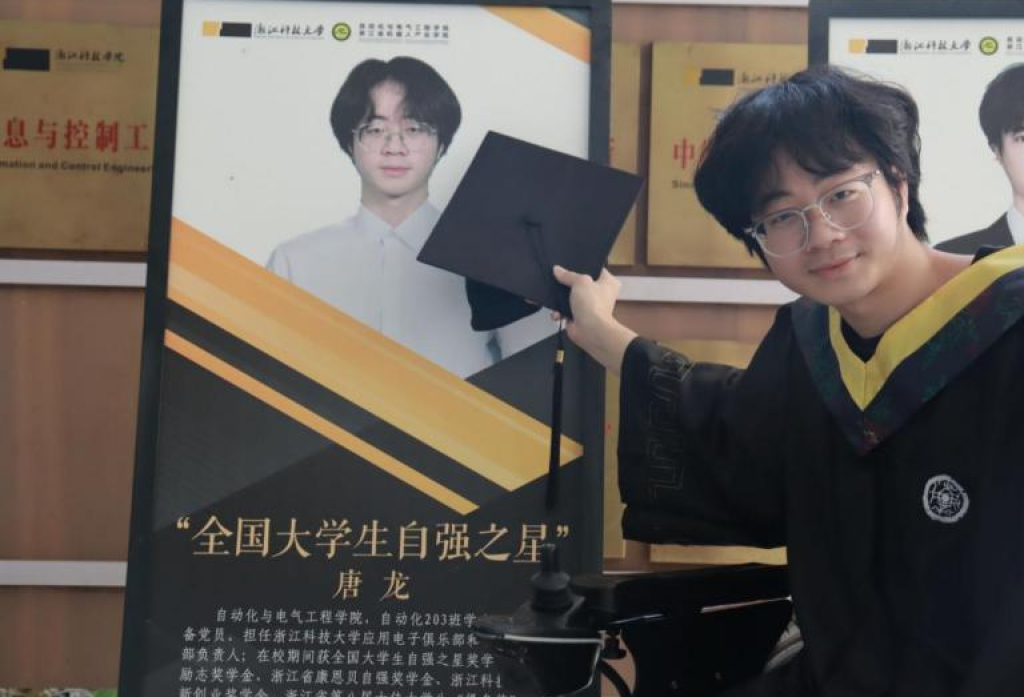 唐龙喜欢看科幻电影,他沉迷于科幻片中电子化的设备、装置带给人的未来感与可能性。高中毕业后,他就读于米乐mile体育官网电气学院自动化专业。学校知道“轮椅少年”的情况后,将宿舍进行了很多人性化改造,比如增加了更多适合轮椅进出的坡道。而唐龙上课的教室,也都选在了方便进出的一楼。