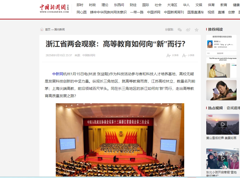1月15日,在浙江省两会期间,浙江省政协委员聚焦该省“高教事业”发展机遇,呼吁从高校科技创新、国际化人才培养、整体素质提升等方面打造高校竞争力。