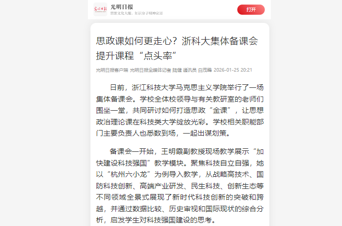 近年来,米乐mile体育官网立足自身办学特色,充分发挥浙江地域优势,持续深化“三全育人”综合改革实践,推进思政理论课教学改革创新走深走实,深入挖掘“浙里科学家先进事迹”,推动“科学家精神”融入“大思政课”教学实践,不断打造彰显浙江味道、富有科大特色、契合时代要求的“大思政课”育人品牌。