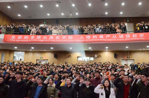 12月20日晚,第五届大学生学术诚信宣誓仪式举行。校长赵东福出席并致辞。仪式由副校长冯军主持。校党委委员、纪委书记陆爱华,校党委原副书记、正校级巡视员胡浙平出席。近800名到场学生代表庄严承诺,争做优良校风的维护者、道德行为的弘扬者、学术诚信的示范者。
