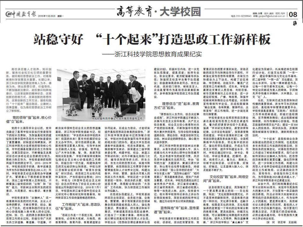 (2016年11月28日,中国教育报刊发文章,关注米乐官网思想政治教育成果)