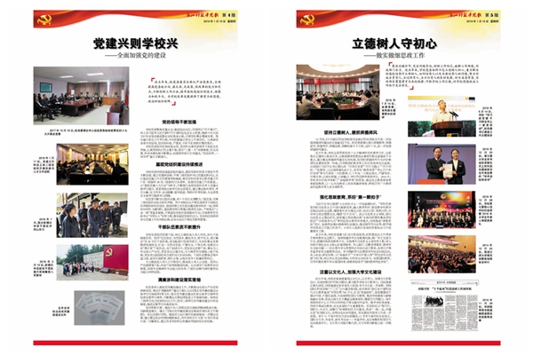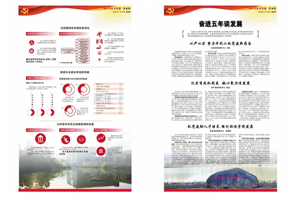 《奋进》特刊系统回顾了校党委带领全校师生砥砺奋进的五年。其中,封面配发评论,鼓舞全校师生同心同德、改革创新、再创辉煌。2版对学校历次党代会进行回顾;3-8版图文并茂,系统梳理过去五年学校在党的建设、思政、人才培养、科研学科、国际合作等方面取得的喜人成绩;9-14版邀请二级党组织负责人畅谈5年来各基层党建实践探索与工作经验,15版介绍本次党代会筹备工作情况。封底号召全校师生为高水平建设社会主义的米乐mile体育官网而努力奋斗!