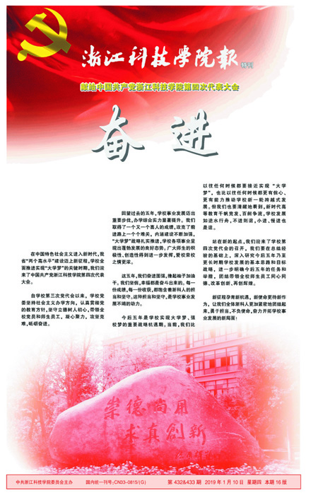 岁序易,华章新。站在新年的起点上,我们将迎来中共浙江科技学院第四次代表大会的隆重召开。