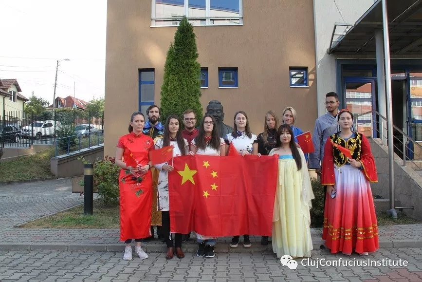 国庆前,罗马尼亚克鲁日孔子学院组织了一系列以庆祝中华人民共和国成立70周年为主题的文化活动,为祖国庆生。孔子学院教学点的老师们组织中罗师生共同书写的汉字“祝福中国”、中罗传统服饰秀等活动,为新中国成立70周年送上的一份真诚祝福。克鲁日孔院师生手持国旗,身穿传统服饰,参加罗马尼亚巴比什-波雅依大学百年校庆大游行。(克鲁日孔子学院 刘雪纯/文 刘九伶/摄)