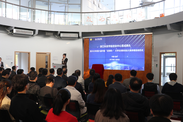 出席活动嘉宾共同为“浙江科技学院创业中心”揭牌。
