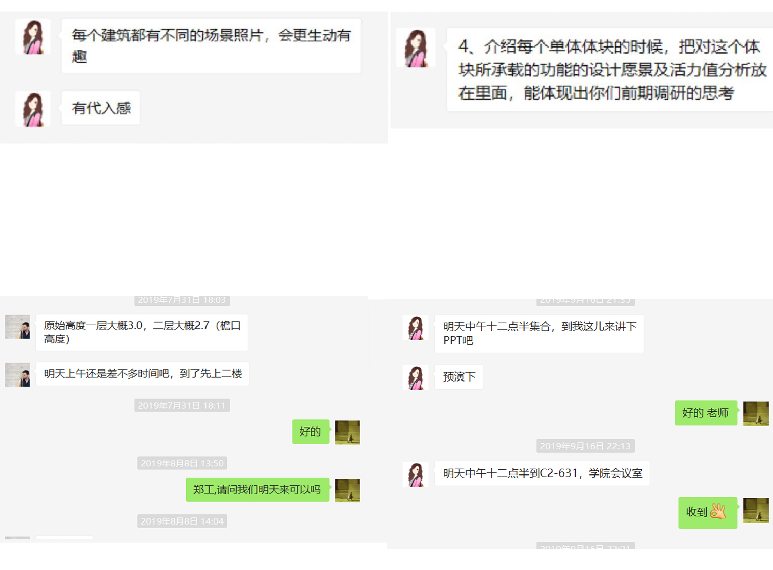 丛蕾这组是由城规系丁康乐老师指导。刚确定竞赛题目,丁老师就带着大家一遍又一遍的分析选题,帮助修改项目切入路径、调整问卷选题设置、挑选现场实测点、优化设计方案。丛蕾和队员前往金华下潘村实地调研和现场实测时,丁老师每天晚上都要电话连线1、2个小时,沟通当天收集到的信息,提醒第二天工作注意事项。丛蕾说:“有一天晚上丁老师又给我打电话,讨论立面整治方案,听到电话那头报站的声音,我才知道他是在等高铁间隙给我打的电话。”