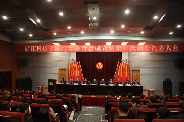 12月27日下午,浙江科技学院妇女联合会成立暨第一次妇女代表大会隆重召开。浙江省妇联副主席陆英到会祝贺。校党政领导班子出席会议。校党委书记龚建立致贺词,大会开幕式、选举环节分别由校党委副书记周加敏、校纪委书记陆爱华主持。