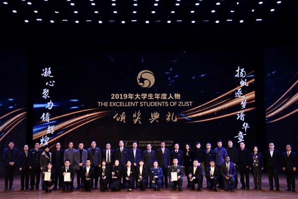 12月26日,2019年大学生年度人物颁奖典礼在学生活动中心举行,校长赵东福等校党政班子成员,民建浙江省委会副主委郭清晔等嘉宾应邀出席为获奖者颁奖。