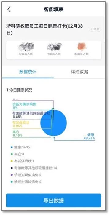 为及时准确了解师生健康状况,信息中心定制开发“浙科云战疫”系统,协助相关部门针对四类学生(本科生、研究生、留学生、继教生)进行每日健康打卡,为学校疫情防控提供详实数据支撑。