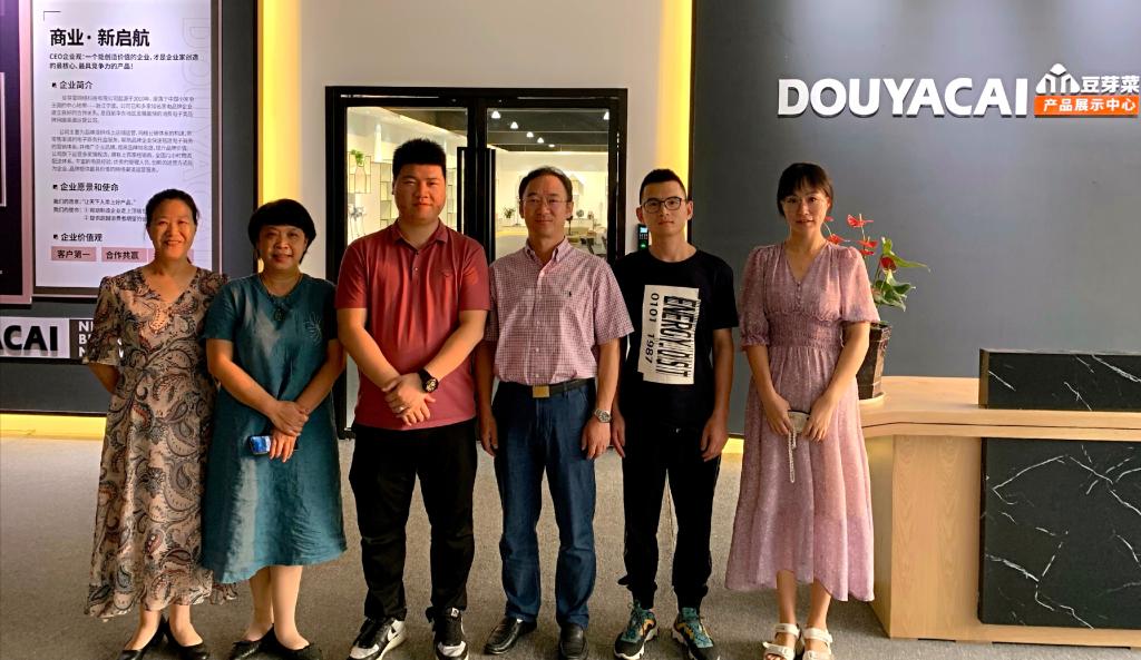 金何杰对母校老师的到来表示热烈欢迎,带领大家参观了企业产品展示厅。他向介绍说,企业取名“豆芽菜”灵感来自于“一滴水孕育的生命”,寓意顽强、坚韧、勇敢,呈现向上的生命力量。企业经过几年的积淀发展,取得了一定成绩,2019年销售额突破3亿元。他说,作为浙科校友,始终关心着母校的发展,也期盼着母校的支持,希望有机会能和母校开展合作,携手前行。