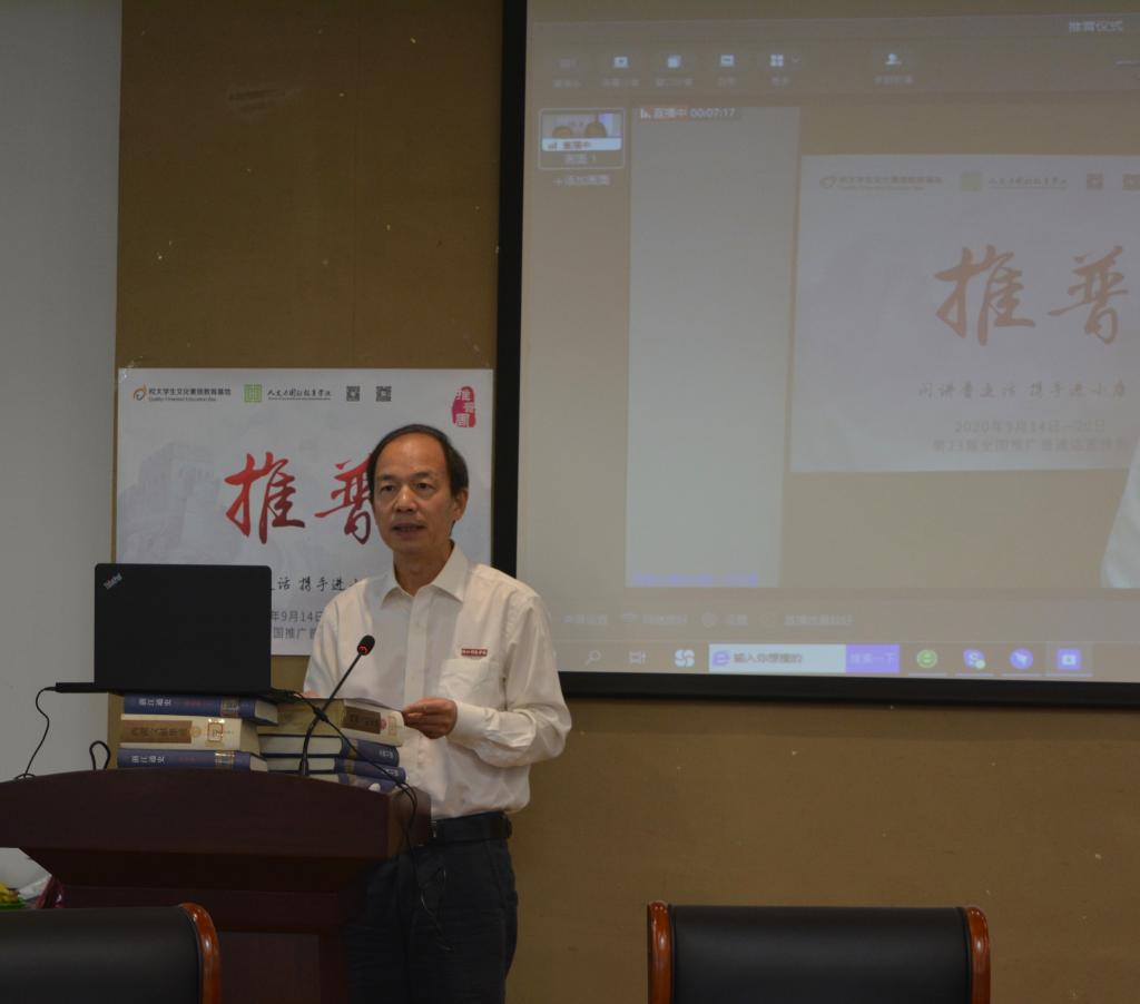 9月18日,米乐官网第23届全国推广普通话宣传周启动仪式在钉钉(大学生文化素质教育基地)直播间举行,校党委副书记周加敏出席。今年推普周活动的主题是“同讲普通话,携手进小康”。