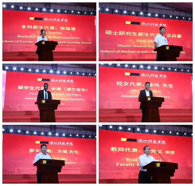 新的起点,新的征程,2020级外国语学院/中德学院陈旭凝、生化学院宗自豪分别作为本科、研究生新生代表发言,努力践行“崇德、尚用、求真、创新”的校训,在浙科成长为更好的自己。