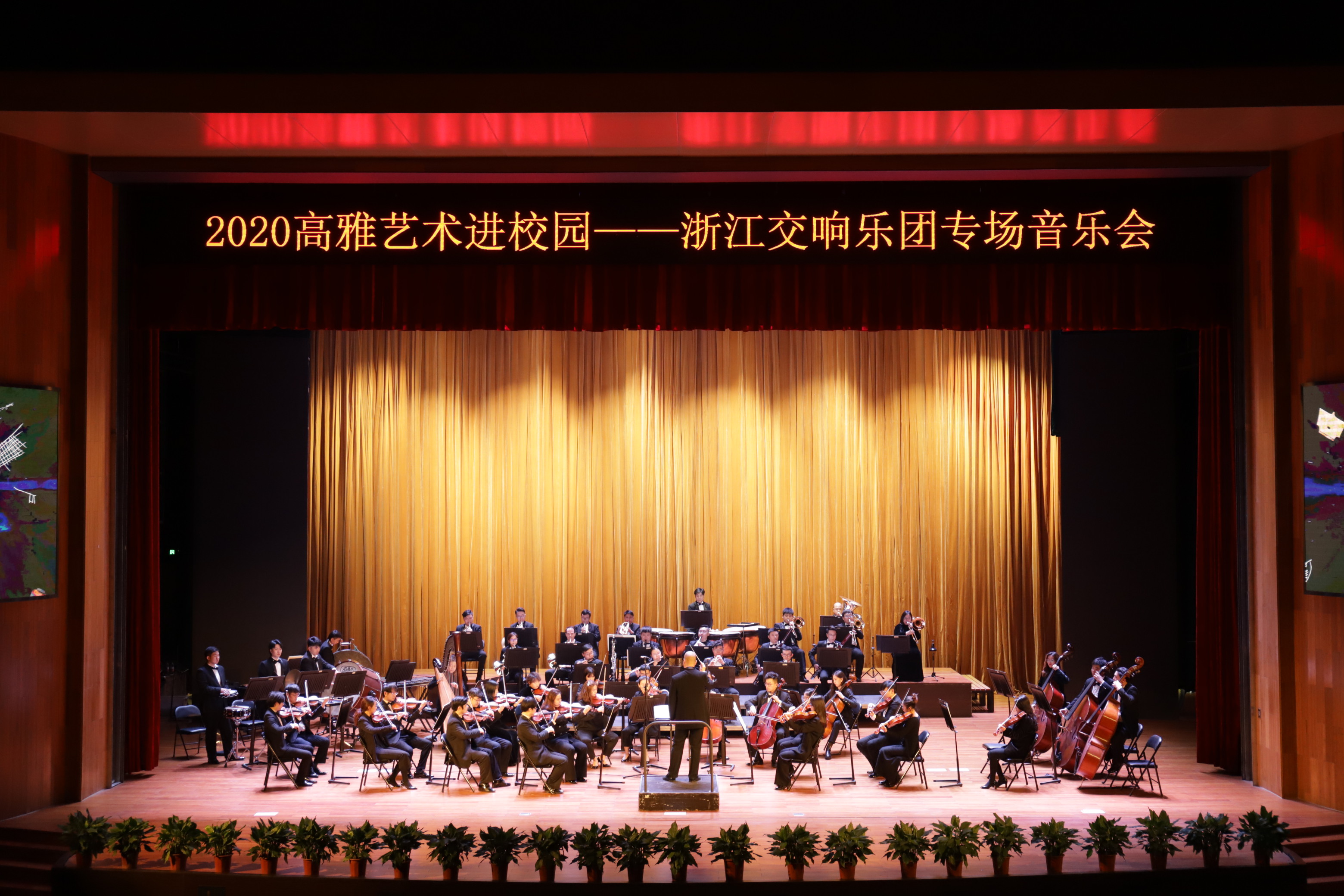 12月1日晚,高雅艺术进校园——浙江交响乐团专场演出在米乐官网举行,副校长单胜道出席并与现场师生共同欣赏了演出。