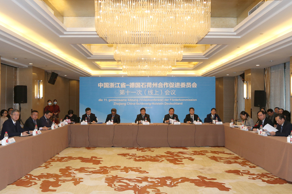 12月17日,中国浙江省—德国石荷州合作促进委员会第11次会议以线上形式举行,浙江省人大常委会副主任李卫宁和石荷州国务秘书德克·施罗德分别代表浙江省和石荷州致辞,浙江省外办主任金永辉主持会议。校长赵东福应邀出席会议并作为唯一的高校代表发言。