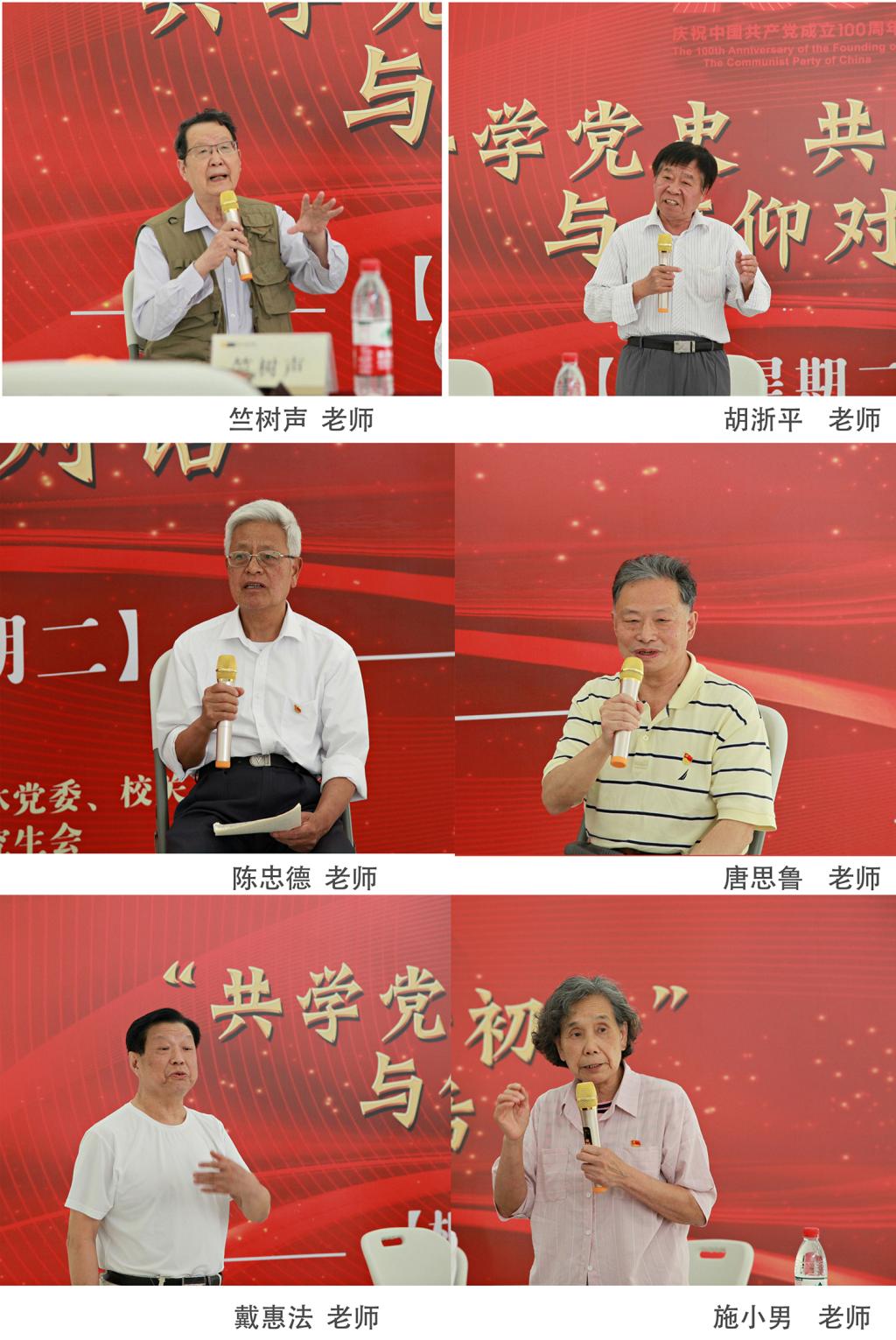 当天下午,“共学党史 共话初心”与信仰对话——50年以上党龄老党员、校关工委成员与青年学子面对面活动在学生活动中心举行,校党委副书记符宁平出席活动。竺树声老师,校党委原副书记、关工委常务副主任胡浙平老师,校党委原副书记陈忠德老师,离退休党委委员、校关工委委员唐思鲁老师,离退休第二支部书记戴惠法老师,56年党龄的老党员施小男老师6位老党员,与50余位青年学生面对面交流,分享自己的入党初心,回顾党的历史,接受思想洗礼,感悟信仰力量,赓续精神伟力。