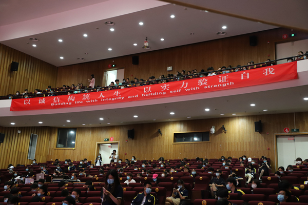 大会表彰了“诚信在我心中”创意设计比赛获奖学生和诚信教育主题班会获奖班级,倡导继续推进学风建设。