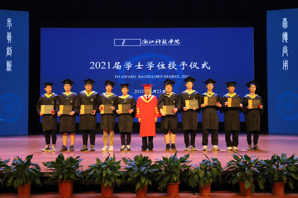 6月22-23日,2021届毕业生学位授予仪式举行。校长赵东福、校党委副书记周加敏、副校长万健等与毕业生合影留念。毕业生从校领导及校学位委员会成员手中领取自己的学位证书。赵东福为2021年荣誉学士学位获得者颁发荣誉学位证书。师长为每位同学拨正学位帽上的流苏。