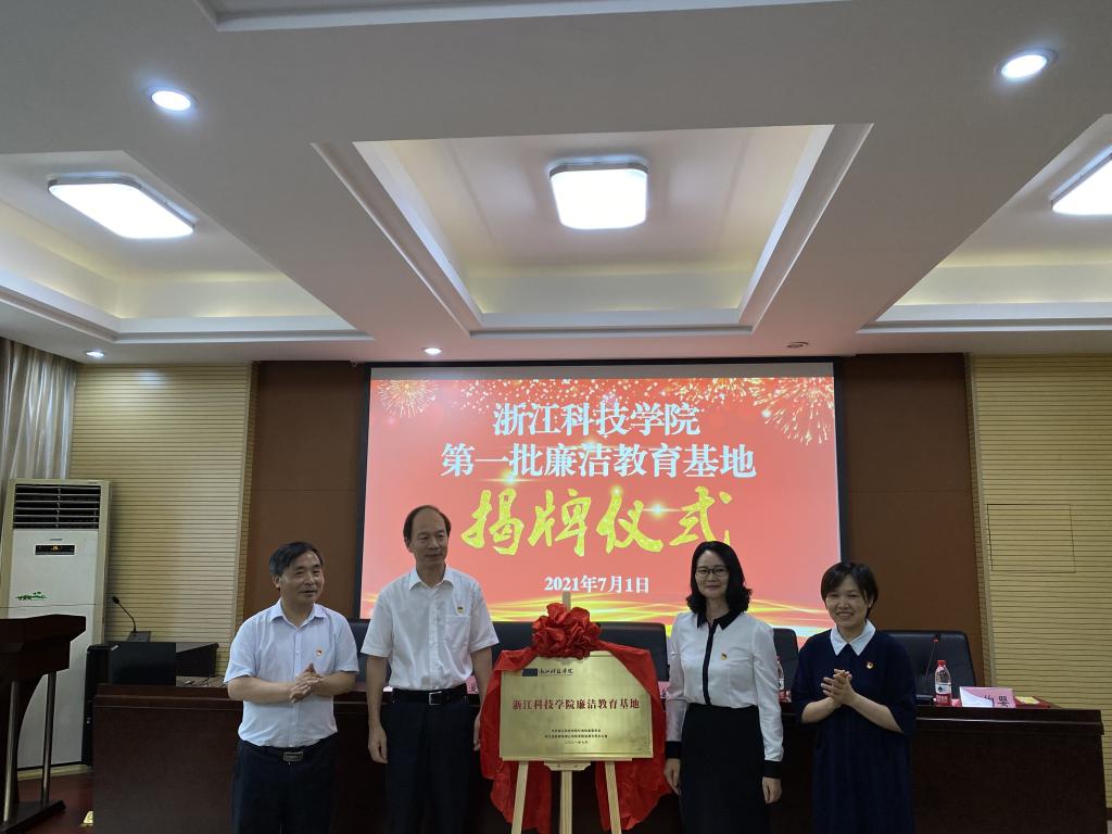 7月1日下午,米乐官网第一批“廉洁教育基地”揭牌仪式举行,以正气充盈的方式庆祝中国共产党成立100周年。校党委副书记周加敏、校纪委书记、省监委驻浙江科技学院监察专员陆爱华共同为“廉洁教育基地”揭牌。