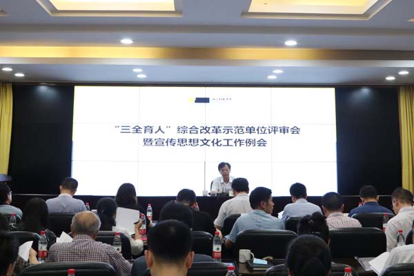 7月6日, “三全育人”综合改革示范单位评审会暨宣传思想文化工作例会召开。校党委副书记符宁平,校党委委员、宣传部部长姜雯,校党委委员、组织部部长李其朋出席。