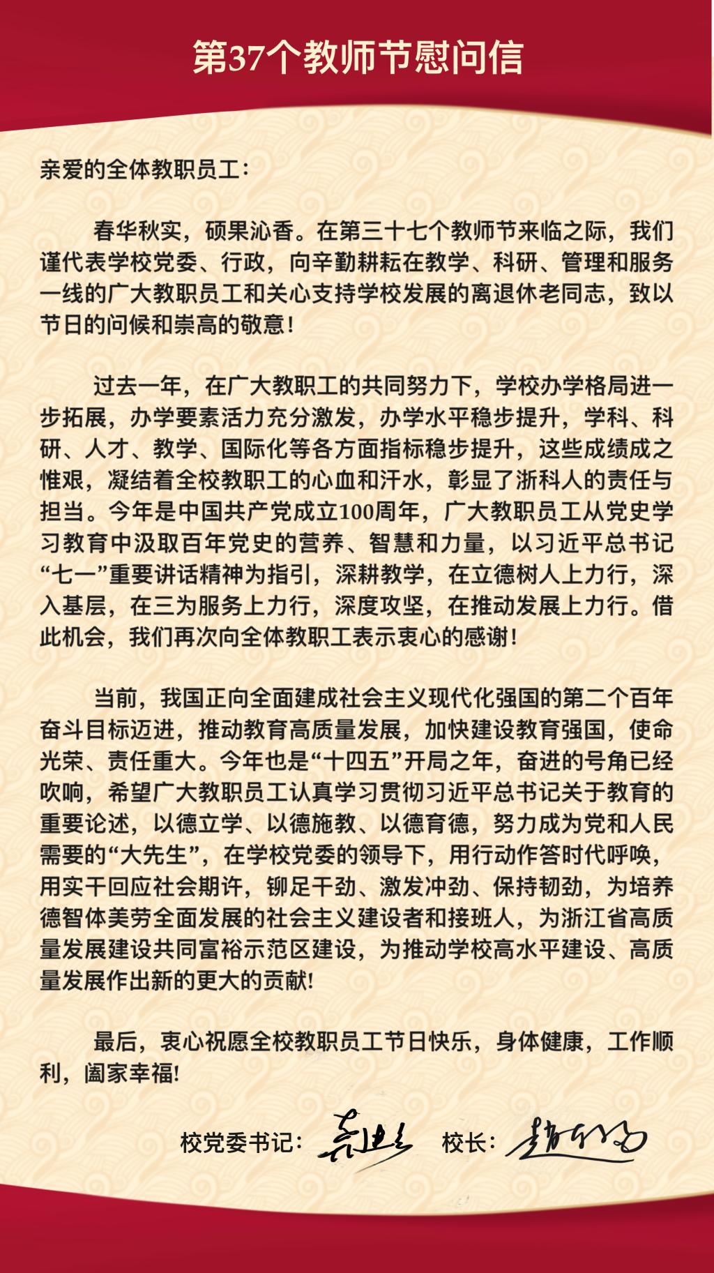 第37个教师节慰问信