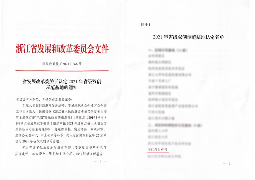 2021年度浙江省大众创业万众创新示范基地申报工作自今年7月份启动以来,学校高度重视,由创新创业学院牵头,认真总结经验和特色,精心组织申报。通过报告审查、层层选拨等环节,顺利入围省发改委组织的现场评审汇报,最终成功入选省级双创示范基地。