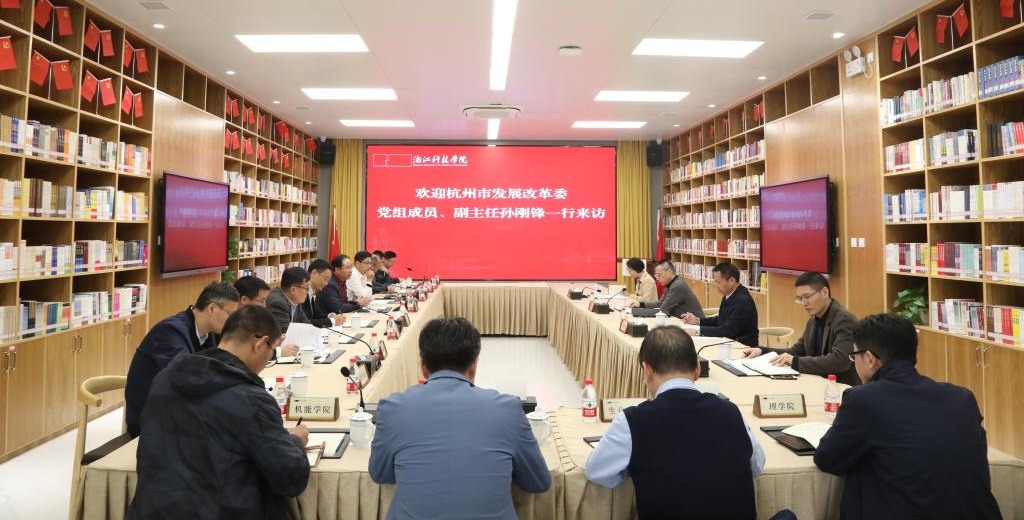 10月26日,杭州市发展和改革委员会党组成员、副主任孙刚锋一行来校调研。校长赵东福、副校长单胜道等陪同。