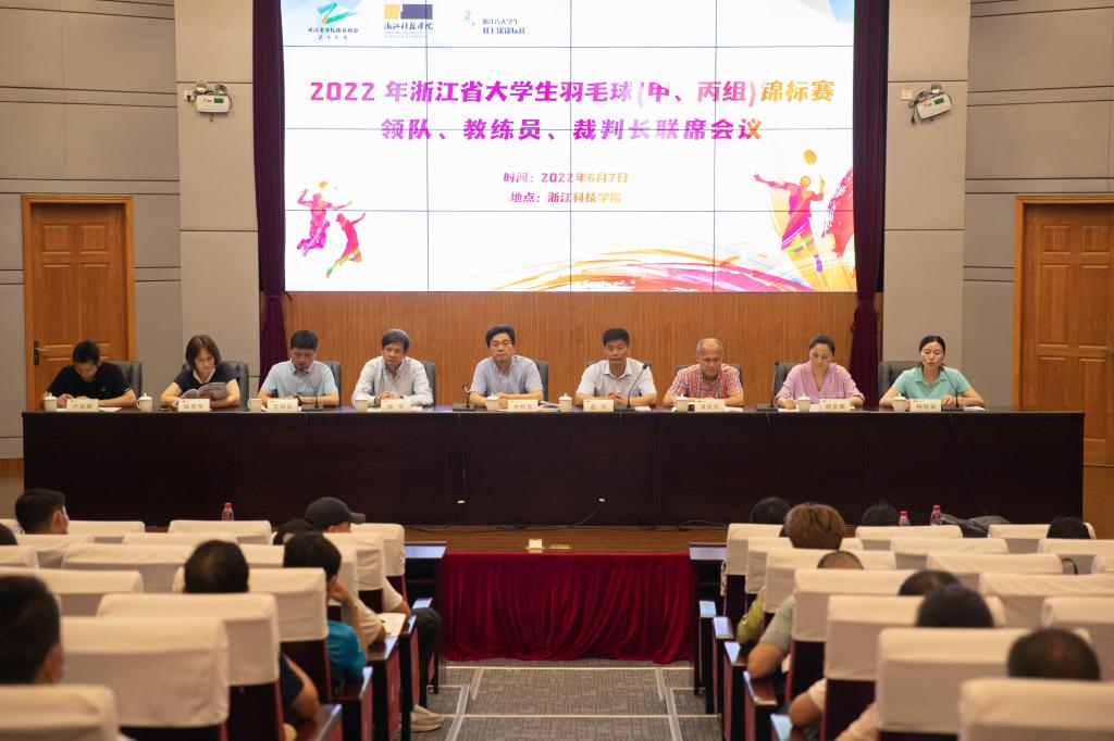6月7-10日,2022年浙江省大学生羽毛球(甲丙组)锦标赛在米乐官网举行。副校长单胜道、浙江省学校体育协会竞赛部主任赵军,浙江省学校体育协会大学羽毛球分会主席陈华出席领队、教练员、裁判长联席会议。比赛期间,浙江省学校体育协会常务副秘书长姜丽教授来校指导工作。