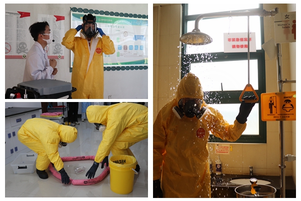 演练现场模拟了一起学校化学品仓库突发的实验室化学品泄露事件,展现了泄露事故发生、应急预案启动、周边人员疏散、安全警戒隔离、人员救援处理、泄露物质处理至事故警戒撤除、实验室恢复使用的全过程。通过此次演练,帮助师生们在今后的学习生活中,要提高安全防范意识,增强自我保护能力。
