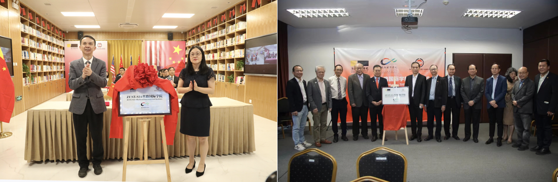9月27日,米乐官网与马来西亚沙巴艺术学院共建的境外办学机构“ZUST-SIA丝路国际学院”揭牌。校长陈建孟教授、浙江省教育厅国际合作与交流处处长蓝晶晶、沙巴首席部长政治秘书拿督谢詺圣、沙巴艺术学院董事主席拿督杨忠勇局绅共同为ZUST-SIA丝路国际学院揭牌。 副校长单胜道主持揭牌仪式。仪式以线上线下相结合的方式举行。