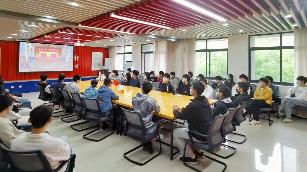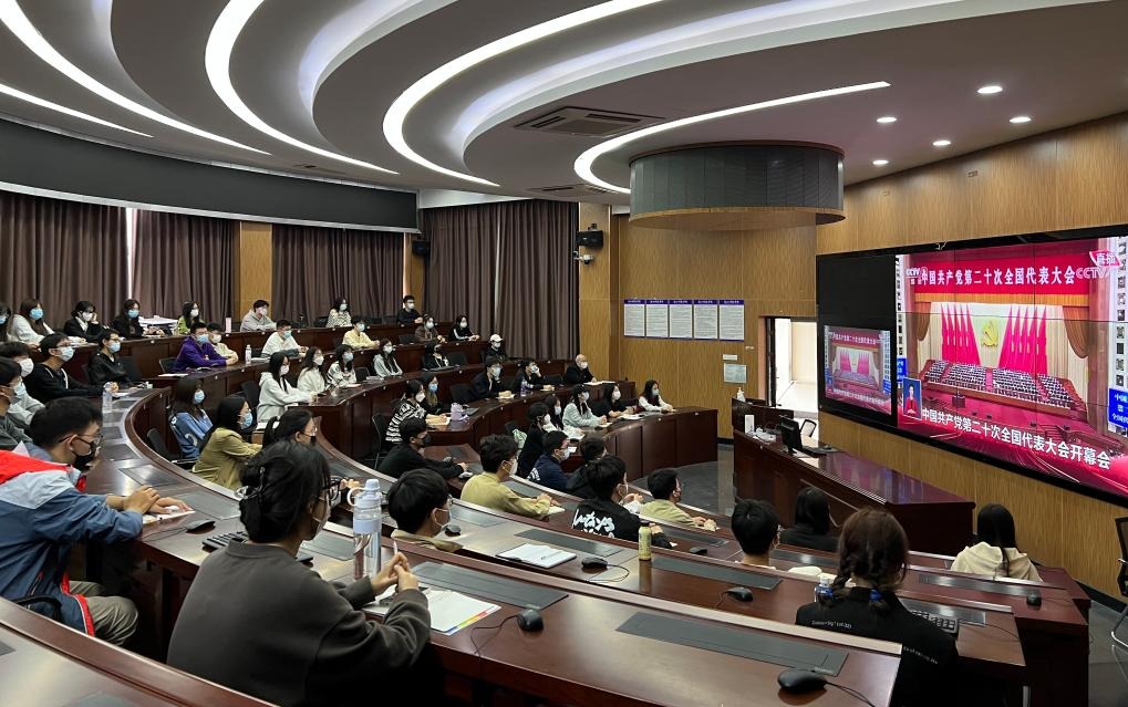 机关党委各支部党员在小和山校区行政楼会议室观看直播,各二级党组织师生通过多种形式收听收看实况直播。为方便师生观看,学校开放教室、大学生社区学院西和书廊、食堂作为直播观看点,校园内,不少学生也纷纷自发在实验室、寝室等地观看,第一时间认真聆听报告。