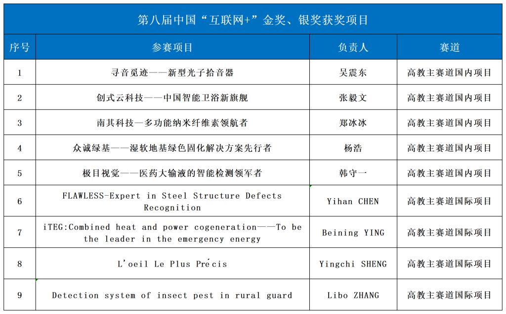 近日,第八届中国国际“互联网+”大学生创新创业大赛总决赛落幕,经过激烈角逐,浙江科技学院获高教主赛道国内项目金奖2项、银奖3项、铜奖1项,金奖获奖位列全国第18位,位列省属高校第3位,实现高教主赛道国内项目金奖数、国奖总数、研究生项目等三大突破,取得历史最好成绩。学校选送的国际项目获银奖4项、铜奖21项。(点击了解获奖项目详情)