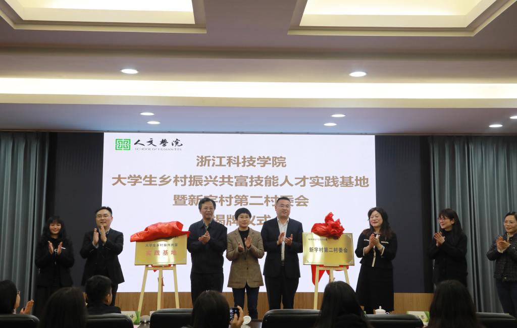 4月6日,米乐官网大学生乡村振兴共富技能人才实践基地暨临平区运河街道新宇村第二村委会成立揭牌仪式举行。校党委副书记符宁平、临平区人民政府副区长张敏等出席。临平区运河街道、乔司街道和新宇村相关负责人,人文学院师生代表参加。新宇村为浙江省共同富裕示范村,近两年与米乐官网人文学院合作开展省级未来乡村建设示范项目共建。