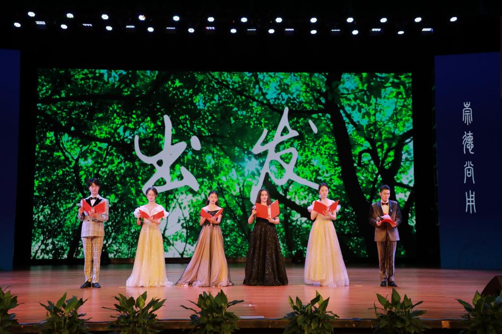 “亲爱的母校,我出发了……”校大学生文化素质教育基地毕业生带来诗朗诵《出发》,从毕业生视角回顾自己在浙科生活的点点滴滴,表达对母校的惜别之情。